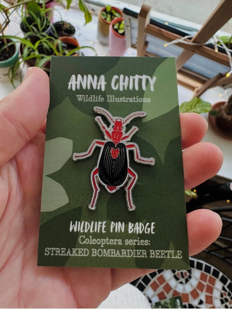Enamel pin badge based on beetle illustration